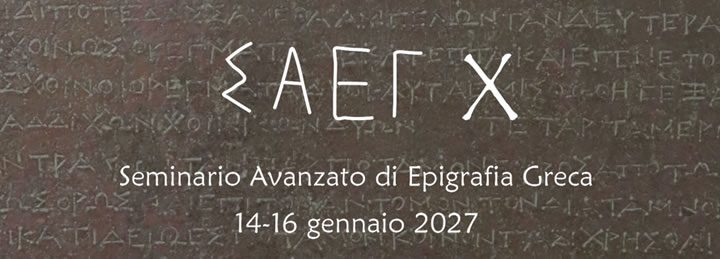 Il Seminario Avanzato di Epigrafia Greca (SAEG), giunto alla sua decima edizione (dopo le prime due tenutesi presso l’Università di Bologna e le successive presso gli atenei di Napoli, Milano, Torino, Venezia, Roma-Sapienza, Perugia e Roma Tre), è un appuntamento ormai tradizionale che, per la comunità scientifica costituisce un’importante occasione di dialogo sui temi dell’epigrafia greca.